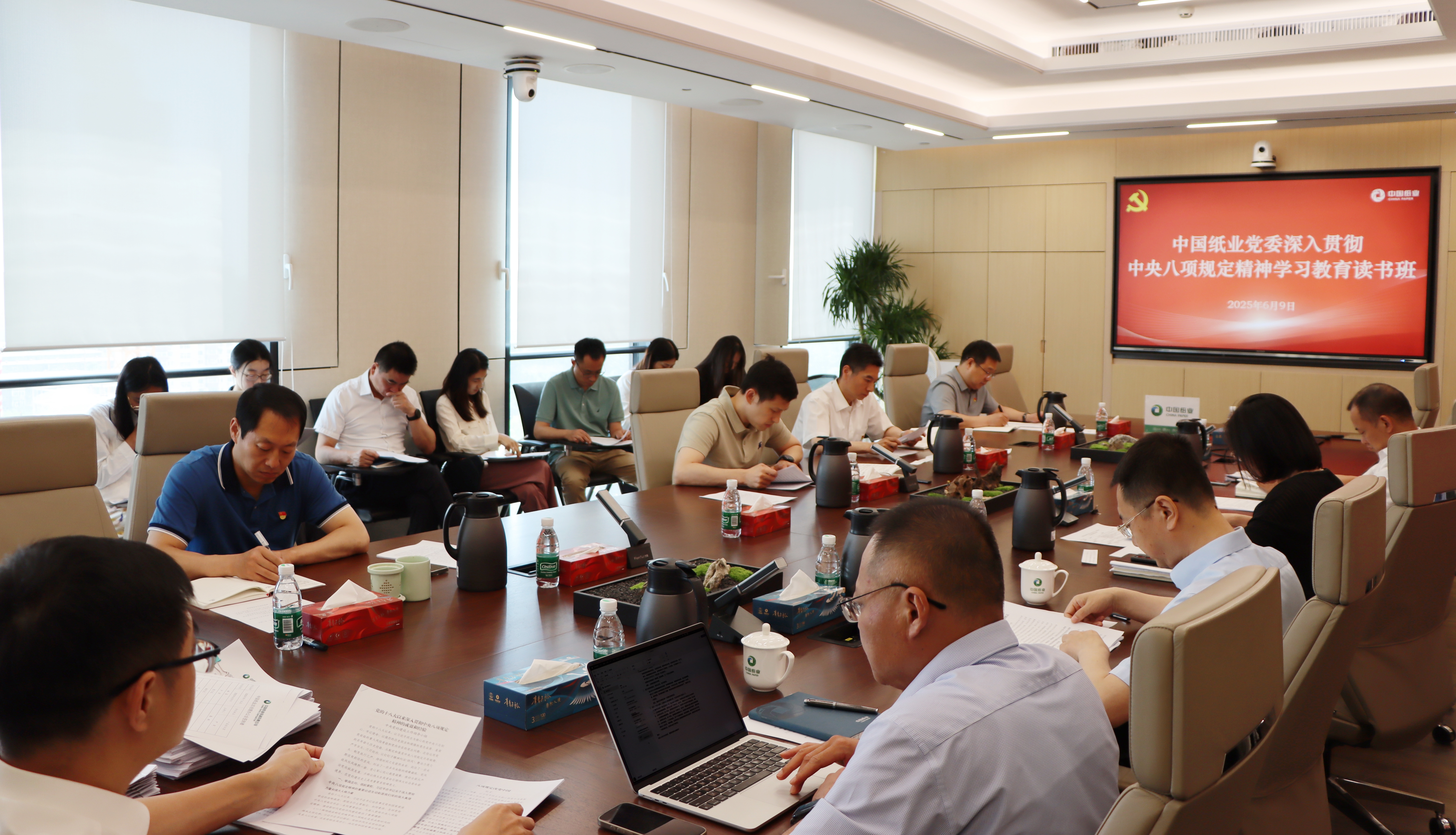 6月9日,中国纸业党委举办深入贯彻中央八项规定精神学习教育读书班,原原本本学习《党的十八大以来深入贯彻中央八项规定精神的成效和经验》和《八项规定改变中国》,持续深化学思践悟,推动深入贯彻中央八项规定精神学习教育不断走向深入。中国纸业党委书记、董事长钟天崎主持学习并讲话。党委领导班子成员严肃、曹卫良、谢先龙、王义福分别结合工作实际进行重点发言,总部第三、第四党支部书记作交流发言。