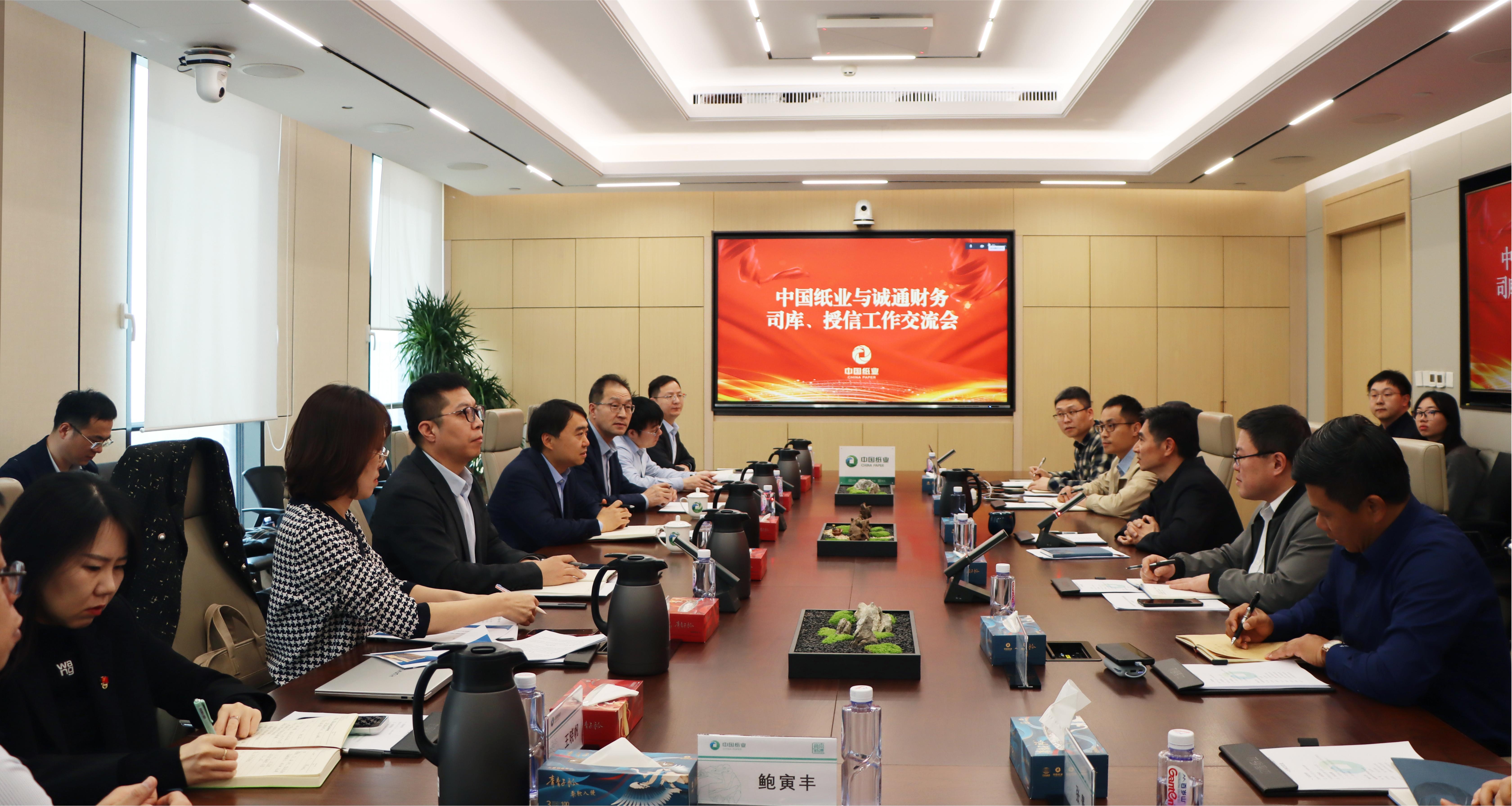 4月3日,中国纸业与诚通财务在北京总部开展沟通交流。公司党委副书记、总经理严肃,诚通财务总经理韩巍、副总经理闫学福出席会议。